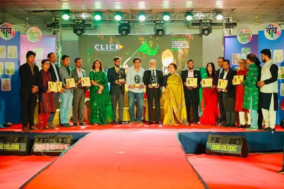 উৎসবে বিভিন্ন পেশার ছয় প্রবীণ গুণীজনকে ‘চট্টলার বীর’ এবং সম্ভাবনাময় ৮ তরুণকে ‘তারুণ্যের কাণ্ডারি’ হিসেবে সম্মাননা দিয়েছে ক্লিক পরিবার। শুক্রবার রাতে নগরের জিইসি কনভেনশন সেন্টারে জমকালো অনুষ্ঠানের মাধ্যমে তাদের হাতে সম্মাননা স্মারক তুলে দেওয়া হয়।