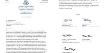 বাংলাদেশে অন্তর্বর্তী সরকারের প্রতি অবাধ, সুষ্ঠু ও অন্তর্ভুক্তিমূলক নির্বাচন নিশ্চিত করার আহ্বান জানিয়েছেন যুক্তরাষ্ট্রের কংগ্রেসের কয়েকজন প্রভাবশালী সদস্য। একইসঙ্গে আসন্ন নির্বাচনের আগে একটি রাজনৈতিক দলের কার্যক্রম সম্পূর্ণভাবে নিষিদ্ধ করার ঘটনায় গভীর উদ্বেগ প্রকাশ করেছেন তারা। হাউস ফরেন অ্যাফেয়ার্স কমিটির র্যাংকিং মেম্বার প্রতিনিধি গ্রেগরি ডব্লিউ. মিকস এবং দক্ষিণ ও মধ্য এশিয়া বিষয়ক সাবকমিটির চেয়ারম্যান বিল হুইজেঙ্গা ও র্যাংকিং মেম্বার সিডনি কামলেগার-ডোভ বুধবার (২৩ ডিসেম্বর) বাংলাদেশের অন্তর্বর্তী সরকারের প্রধান উপদেষ্টা ড. মুহাম্মদ ইউনূসের কাছে এ সংক্রান্ত একটি চিঠি পাঠান। চিঠিতে সহস্বাক্ষর করেন জুলি জনসন ও টম সুয়োজি। চিঠিতে কংগ্রেস সদস্যরা বলেন, “বাংলাদেশেআরো পড়ুন